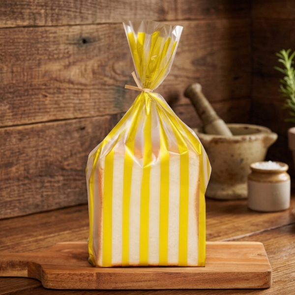 鮮やかなストライプ柄は、中に入れたパンをより美味しそうに、華やかに演出。お客様の「つい手に取りたくなる」気持ちを刺激し、購買意欲を高めます。